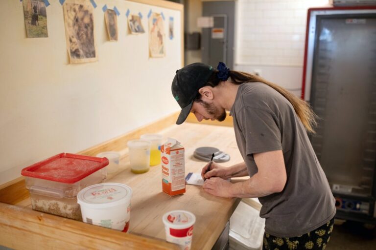పోర్ట్ల్యాండ్లోని మోంటేస్ ఫైన్ ఫుడ్స్లో బేకర్ అయిన దేవన్ ప్లాట్, విద్యుత్తు అంతరాయం కారణంగా తన స్టోర్ కోల్పోయిన తాజా ఉత్పత్తుల జాబితాను రూపొందించింది. బ్రియానా సౌకప్/స్టాఫ్ ఫోటోగ్రాఫర్