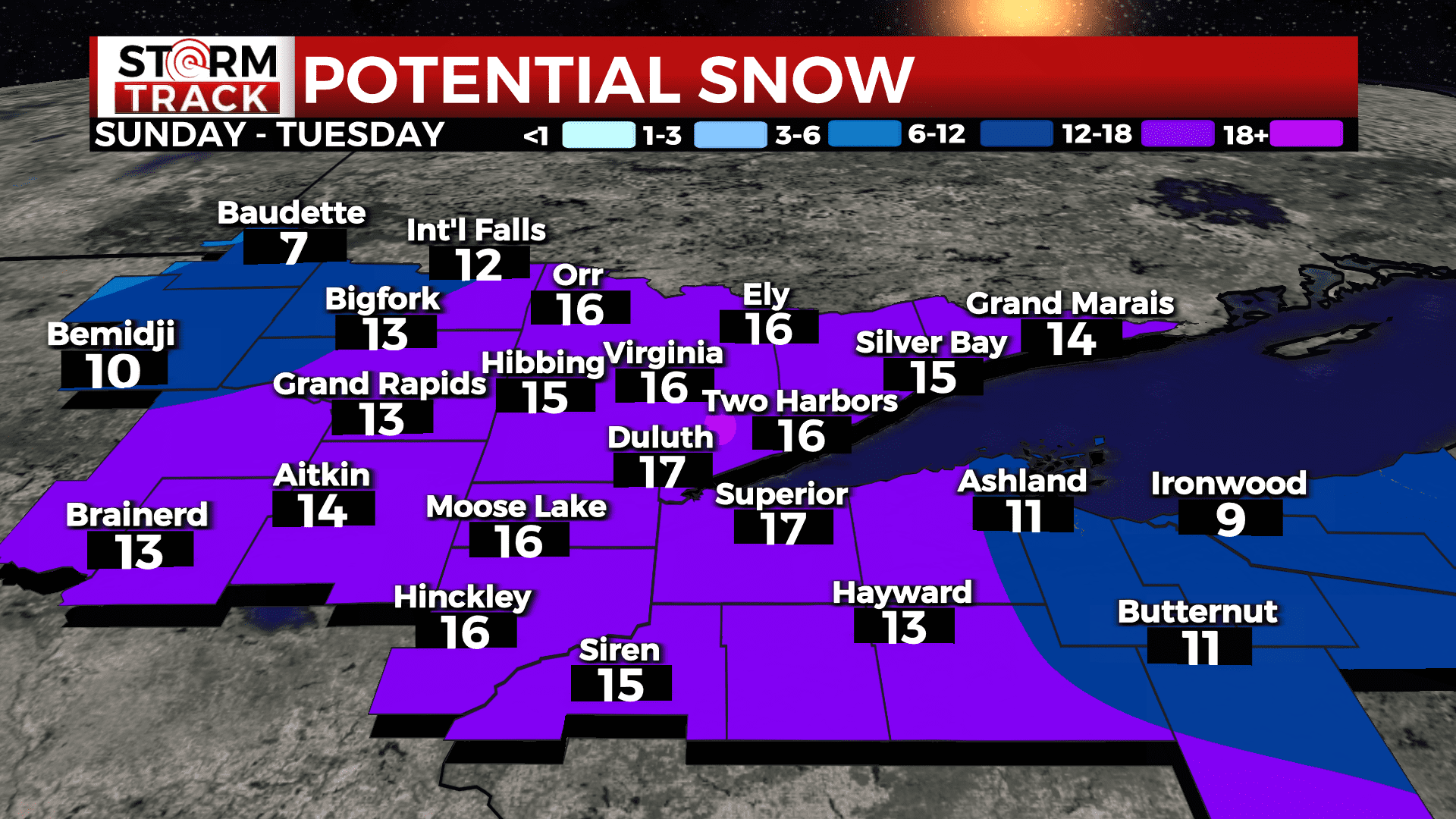 మంగళవారం సాయంత్రం వ్యవస్థ ముగిసేలోపు మంచు క్రమంగా తేలికగా మారుతుంది. చాలా నార్త్‌ల్యాండ్ ప్రాంతం మరియు జంట నగరాలు చివరికి ఒక అడుగు కంటే ఎక్కువ మంచును చూడవచ్చు.