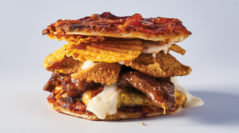 బహుశా ఇప్పటివరకు సృష్టించిన అత్యంత సెయింట్ లూయిస్ బర్గర్ ఒక రోజు మాత్రమే తిరిగి వచ్చింది. సెయింట్ లూనాటిక్ అనేది డబుల్ చీజ్బర్గర్, ఇది సెయింట్ లూయిస్-స్టైల్ పిజ్జాతో ఉంటుంది మరియు పోర్క్ స్టీక్, టోస్ట్డ్ రావియోలీ, రెడ్ హాట్ రిప్లెట్స్ మరియు ప్రోవెల్ చీజ్ సాస్తో వస్తుంది. పైన పేర్కొన్న మెల్టీ బటర్ కేక్తో దీన్ని జత చేయండి మరియు మీరు పూర్తి సెయింట్ లూయిస్ మీల్ను కలిగి ఉంటారు.