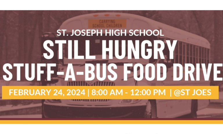 ట్రంబుల్ – సెయింట్ జోసెఫ్ హై స్కూల్ రెండవ వార్షిక “ఇప్పటికీ ఆకలితో” స్టాఫ్-ఎ-బస్ ఫుడ్ డ్రైవ్ తేదీలను ప్రకటించడం గర్వంగా ఉంది. ఈ డ్రైవ్ ఫిబ్రవరి 24వ తేదీ శనివారం ఉదయం 8 గంటల నుండి మధ్యాహ్నం వరకు పాఠశాల క్యాంపస్లో (ట్రంబుల్లోని 2320 హంటింగ్టన్ టర్న్పైక్) జరుగుతుంది. బ్రిడ్జ్పోర్ట్ రెస్క్యూ మిషన్, స్టెర్లింగ్ హౌస్ కమ్యూనిటీ సెంటర్, థామస్ మెర్టన్ సెంటర్, సెయింట్ విన్సెంట్ డి పాల్ ఫుడ్ ప్యాంట్రీ, మెర్సీ లెర్నింగ్ సెంటర్, మరియు బ్లెస్డ్. సభ్యులను పిలుస్తున్నారు మతకర్మ లార్డర్.