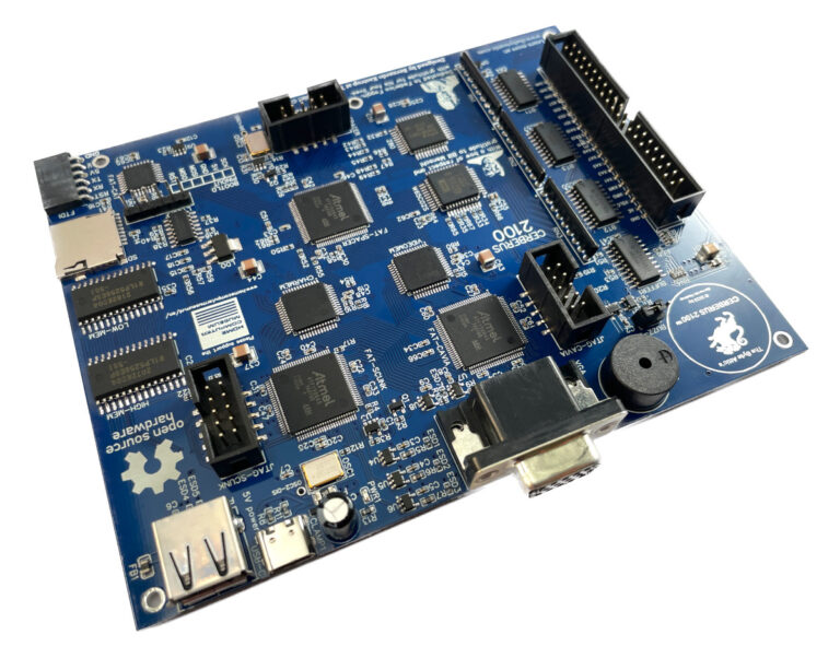CERBERUS 2100 బహుళ CPLDలను కలిగి ఉంది మరియు Z80 మరియు 6502 CPUలపై నడుస్తున్న బేసిక్ ఇంటర్‌ప్రెటర్ వరకు అత్యల్ప స్థాయి (వ్యక్తిగత గేట్లు మరియు ఫ్లిప్-ఫ్లాప్‌లు) నుండి పూర్తిగా ప్రోగ్రామబుల్ అవుతుంది. హార్డ్‌వేర్ డిజైన్ బెర్నార్డో కాస్ట్రప్ (అకా TheByteAttic) చే మరియు బేసిక్ ఇంటర్‌ప్రెటర్‌ని అలెగ్జాండర్ షరీఖిన్ (6502) మరియు డీన్ బెల్ఫీల్డ్ (Z80) రచించినందున ఒలిమెక్స్ దానిని స్వయంగా రూపొందించలేదు.