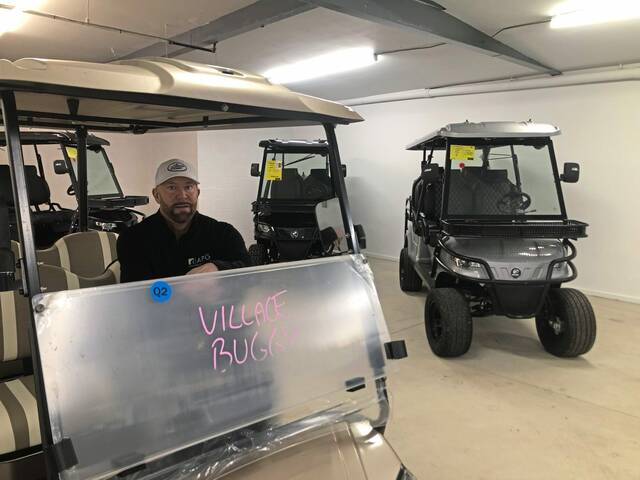 క్యాంప్ హార్న్ రోడ్లోని B&J గోల్ఫ్ కార్ట్స్ యజమాని విన్నీ గరోఫాలో మార్చి 18న సిమన్స్తో షాపింగ్ చేయడానికి విలేజ్ బగ్గీని సందర్శించారు.
