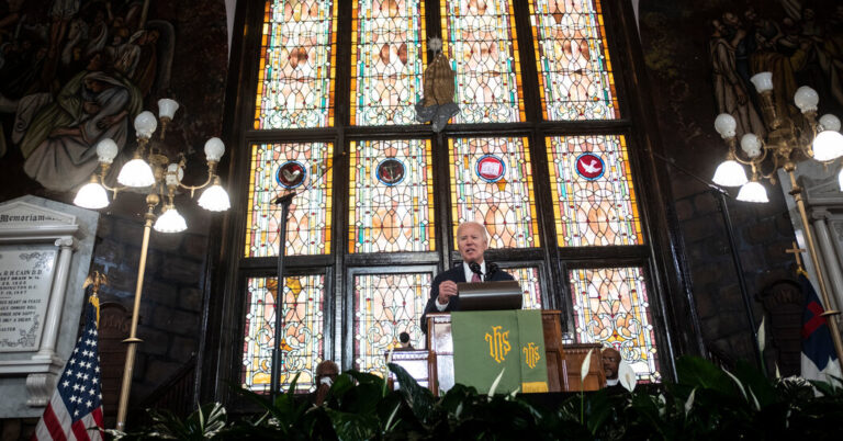 దక్షిణాదిలోని పురాతన ఆఫ్రికన్ మెథడిస్ట్ ఎపిస్కోపల్ చర్చి యొక్క పల్పిట్ నుండి మాట్లాడుతూ, బిడెన్ బానిసత్వం, అంతర్యుద్ధం మరియు జిమ్ క్రో నుండి నేటి విభాగానికి ప్రత్యక్ష రేఖను గీసాడు. కాన్ఫెడరేట్ తిరుగుబాటును “ఉదాత్తమైన కారణం” అని పిలవడం “స్వార్థపూరిత అబద్ధం” అయినట్లే, ఎన్నికల విజయానికి ట్రంప్ చేసిన వాదనను చరిత్రను తిరగరాసే ప్రయత్నం అని అధ్యక్షుడు పేర్కొన్నారు.