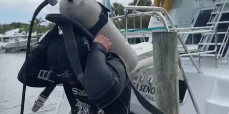 జనవరిలో అతని డైవ్ యొక్క వీడియో ఉపరితలం క్రింద స్పష్టమైన వీక్షణను చూపుతుంది, అయితే ఇటీవలి వీడియోలో ఫిబ్రవరి మధ్యలో ప్రారంభమైన Okeechobee సరస్సు నీటి విడుదలల ఫలితంగా మురికి నీటిని చూపిస్తుంది. ఇది ప్రతిబింబిస్తుంది.
