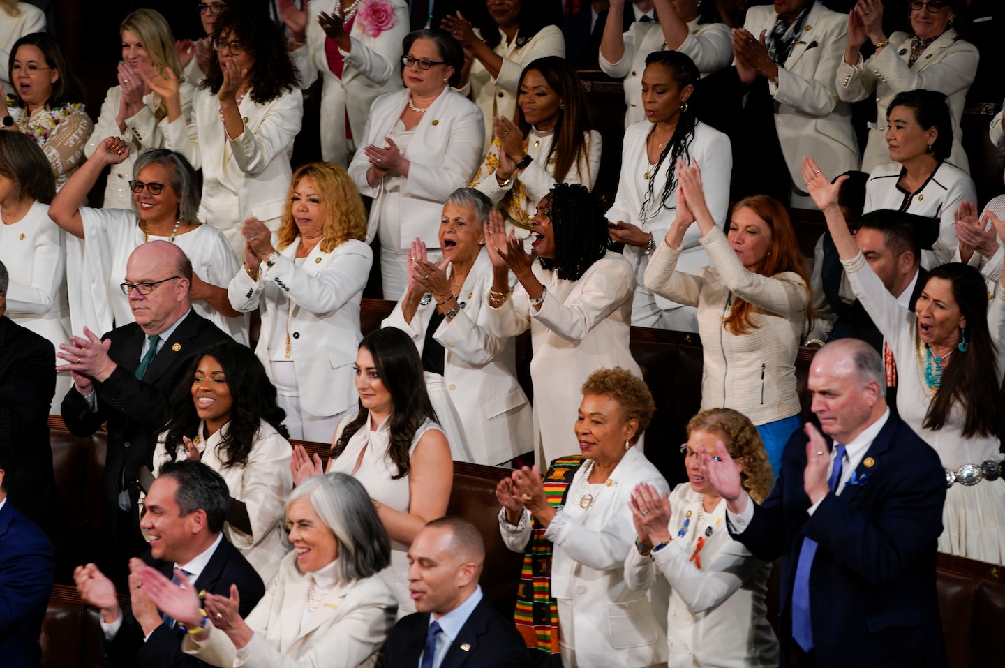 మధ్యమధ్యలో, విధేయత మరియు నిరసనల యొక్క లెక్కలేనన్ని చిన్న చిన్న ప్రకటనలు ఉన్నాయి. TGI శుక్రవారాల్లో వెయిటర్ల కంటే చాలా మంది ఎంపీలు తమ ఒడిలో ఎక్కువ బటన్లను ధరించారు. అనేక మంది హాజరైనవారు “153” అని రాసి ఉన్న సరళమైన దీర్ఘచతురస్రాకార స్టిక్కర్లను ధరించారు, ఇది ఇజ్రాయెలీ బందీలను హమాస్ చేత పట్టుకున్న రోజుల సంఖ్యను సూచిస్తుంది. మాజీ హౌస్ స్పీకర్ నాన్సీ పెలోసి (D-కాలిఫ్.) ఎరుపు మరియు నీలం రంగు నెక్లెస్ను ఎంచుకున్నారు, ఇది ద్వైపాక్షిక ఫ్యాషన్ ప్రకటన, మరియు ఆమె 2019లో ప్రెసిడెంట్ డోనాల్డ్ ట్రంప్ వెనుక ప్రముఖంగా కూర్చున్నప్పుడు తెల్లటి సూట్ను కూడా ధరించింది. దాని ప్రకారం దానిని ధరించారు.