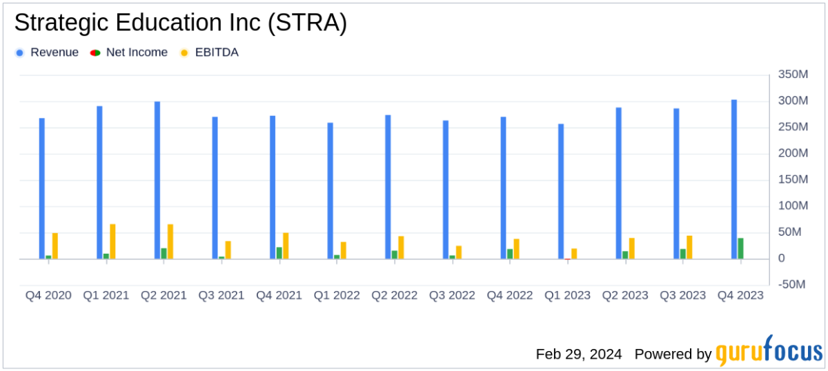 ఫిబ్రవరి 29, 2024న, స్ట్రాటజిక్ ఎడ్యుకేషన్ ఇంక్ (NASDAQ:STRA) డిసెంబర్ 31, 2023తో ముగిసిన నాల్గవ త్రైమాసిక ఆర్థిక ఫలితాలను వివరిస్తూ తన 8-K నివేదికను విడుదల చేసింది. స్ట్రేయర్తో సహా వివిధ అనుబంధ సంస్థల ద్వారా నాణ్యమైన విద్యను అందించడానికి కంపెనీ ప్రసిద్ధి చెందింది. విశ్వవిద్యాలయాలు, కాపెల్లా విశ్వవిద్యాలయం మరియు టోరెన్స్ విశ్వవిద్యాలయాలు, గత సంవత్సరం ఇదే కాలంతో పోలిస్తే ఆదాయం మరియు నికర ఆదాయంలో గణనీయమైన పెరుగుదలను నివేదించాయి.