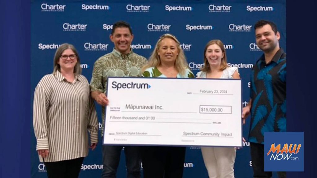 ఈ సంవత్సరం $15,000 స్పెక్ట్రమ్ డిజిటల్ ఎడ్యుకేషన్ గ్రాంట్ను అందుకున్న దేశవ్యాప్తంగా ఉన్న 46 లాభాపేక్షలేని సంస్థలలో Māpunawai Inc. ఒకటి అని స్పెక్ట్రమ్ ప్రకటించింది.