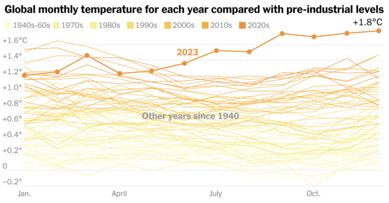 యూరోపియన్ యూనియన్ యొక్క కోపర్నికస్ క్లైమేట్ చేంజ్ ఏజెన్సీ డైరెక్టర్ కార్లో బ్యూంటెంపో విలేకరుల సమావేశంలో మాట్లాడుతూ, శాస్త్రవేత్తలు ఉపగ్రహ పరిశీలనలు మరియు వాతావరణం యొక్క సుదూర గతానికి సంబంధించిన భౌగోళిక ఆధారాల కలయిక 2023కి కనీసం 100,000 సంవత్సరాల వయస్సు ఉంటుందని సూచిస్తున్నట్లు చెప్పారు. ఇది ప్రపంచంలోనే అత్యంత వెచ్చని సంవత్సరం అవుతుంది. “చివరిసారి ఉష్ణోగ్రతలు ఇంత ఎక్కువగా ఉన్నప్పుడు, ఈ గ్రహం మీద నగరాలు లేవు, పుస్తకాలు లేవు, వ్యవసాయం లేదు, పశువులు లేవు” అని ఆయన చెప్పారు.