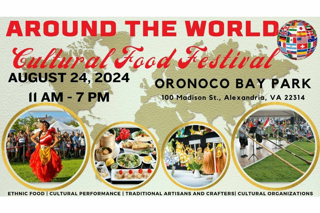 వర్జీనియాలోని ఓల్డ్ టౌన్ అలెగ్జాండ్రియాలోని ఒరోనోకో బే పార్క్‌లో ఆగస్టు 24, 2024న ఉదయం 11 గంటల నుండి సాయంత్రం 7 గంటల వరకు ప్రపంచవ్యాప్తంగా ఉన్న సంస్కృతుల పురాణ వేడుకల కోసం మాతో చేరండి. ప్రపంచ వ్యాప్తంగా సాంస్కృతిక ఆహార ఉత్సవం వేచి ఉంది.