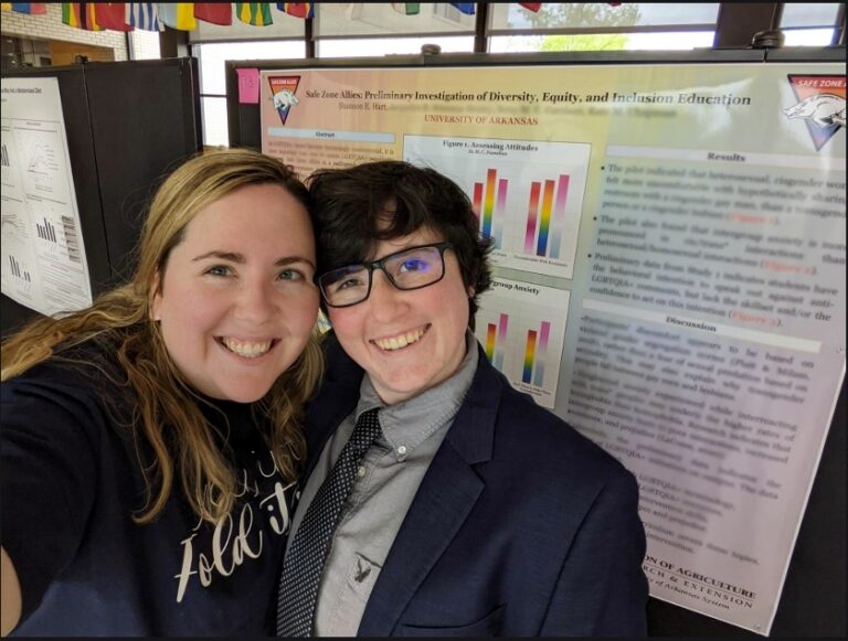 షానన్ హార్ట్ (కుడి) నిపుణుల సమావేశంలో పోస్టర్ను ప్రదర్శిస్తున్నారు.