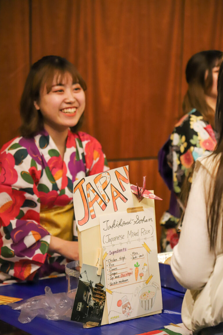 జపనీస్ టేబుల్ ISA యొక్క ఇంటర్నేషనల్ ఫుడ్ ఫెస్టివల్ నుండి విద్యార్థులు అతిథులను స్వాగతిస్తారు. (ఫోటో కర్టసీ ఆఫ్ సారా థాంప్సన్)