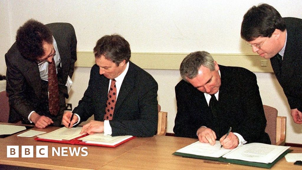 ప్రధాన మంత్రి టోనీ బ్లెయిర్ మరియు టావోసీచ్ బెర్టీ అహెర్న్ బెల్ఫాస్ట్ లేదా గుడ్ ఫ్రైడే ఒప్పందంపై 10 ఏప్రిల్ 1998న సంతకం చేశారు.