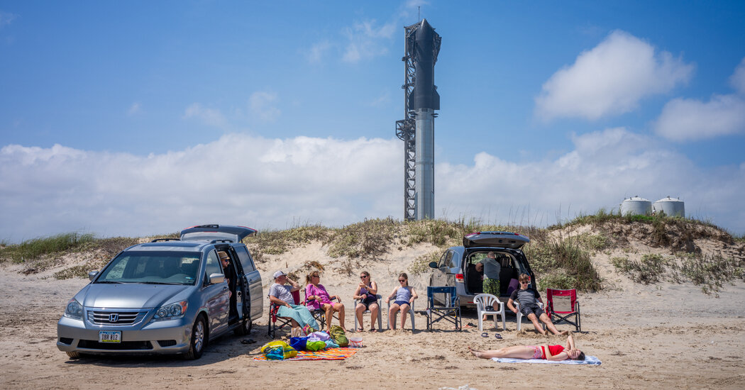టెక్సాస్‌లోని బ్రౌన్స్‌విల్లే నుండి సరిహద్దులో ఉన్న మెక్సికోలోని మాటామోరోస్ నుండి ప్రజలు నవంబర్‌లో SpaceX యొక్క భారీ స్టార్‌షిప్ రాకెట్ టేకాఫ్‌ను వీక్షించారు.క్రెడిట్…షట్టర్‌స్టాక్ ద్వారా అబ్రహం పినెడ-జాకోమెట్/EPA