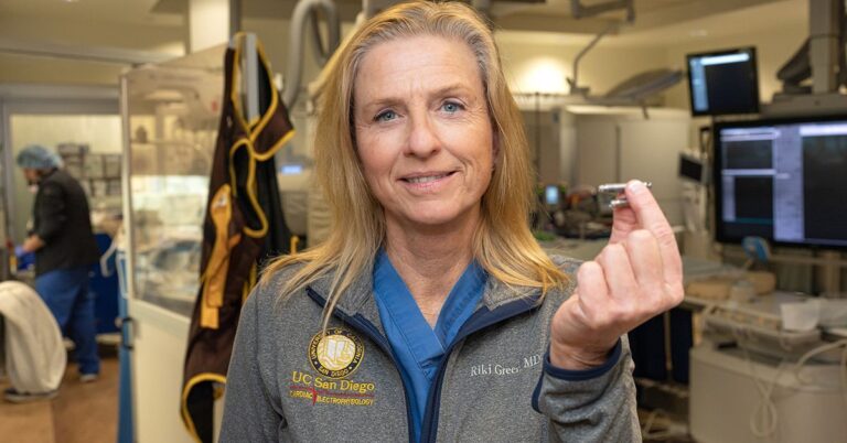 “గుండెకు రెండు వైపులా లెడ్లెస్ పేస్మేకర్ సిస్టమ్ని ఉపయోగించుకునే అవకాశం ఉండటం వల్ల ప్రస్తుతం కార్డియాక్ అరిథ్మియా ఉన్న ఎక్కువ మందికి చికిత్స అందించగలుగుతాము” అని UC సన్ కార్డియాలజిస్ట్ మరియు పేస్మేకర్ మరియు ICD సేవల డైరెక్టర్ డాక్టర్ ఉల్రికా బిర్గర్స్డోటర్-గ్రీన్ అన్నారు. బాధ్యత వహించే వ్యక్తి. డియెగో ఆరోగ్యం.