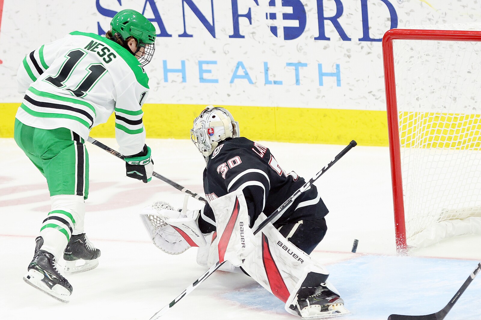 గత మార్చిలో ఒమాహాలో జరిగిన నేషనల్ కాలేజియేట్ హాకీ కాన్ఫరెన్స్ క్వార్టర్ ఫైనల్ ప్లేఆఫ్ సిరీస్లో నిర్ణయాత్మక గేమ్ 3లో నెస్ విజయ గోల్ సాధించాడు.