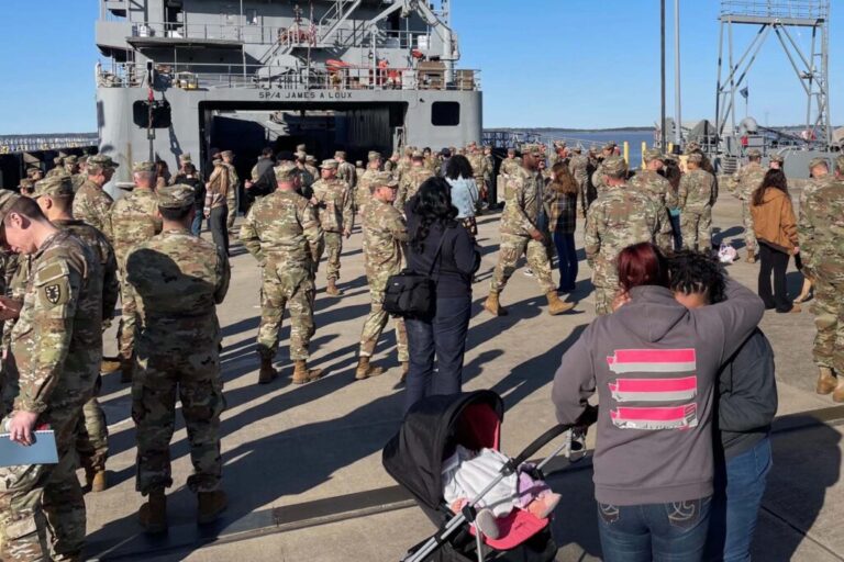 మార్చి 12, వర్జీనియాలోని జాయింట్ బేస్ లాంగ్లీ-యూస్టిస్‌లో 7వ రవాణా బెటాలియన్‌లోని సైనికులు ఓడపైకి చేరారు. గాజాలో U.S. మానవతా ప్రయత్నంలో భాగంగా సైనికులు మధ్యధరా సముద్రం వైపు వెళుతున్నారు.