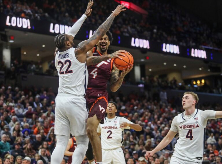 చార్లోటెస్‌విల్లే – జాన్ పాల్ జోన్స్ ఎరీనాలో బుధవారం రాత్రి రాష్ట్ర ప్రత్యర్థి వర్జీనియా టెక్‌పై 65-57 తేడాతో విజయం సాధించిన వర్జీనియా తన దేశంలోనే అత్యుత్తమ హోమ్ విజయాల పరంపరను 20కి పెంచుకుంది.